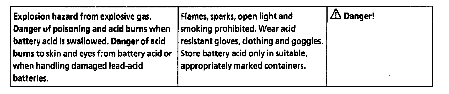 - Store battery acid only in suitable, appropriately marked containers.