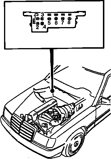 The on-board [1][2]diagnostic connector with push-button and light emitting diode (LED) is located on the engine compartment firewall. The on-board diagnostic connector provides information concerning fault conditions within the CIS-E, SRS, MAS, Electronic A/T transmission and other computer controlled systems. Up to 34 fault codes concerning emission related problems may be accessed with the incorporated push-button and "LED", however, an impulse counter or the Bosch ON/OFF Ratio tester must be used for trouble code access of other related engine systems.