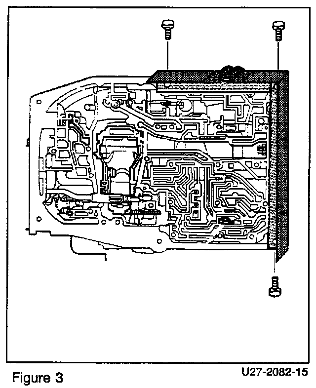 1. Remove transmission oil pan and gasket, oil filter, valve body and large intermediate plate, (Figure 1) (SMS Job Nos. 27-400 and 27-430).