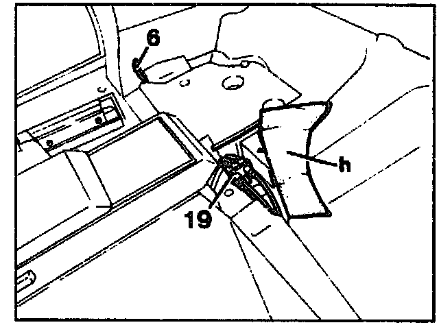 1 Open cover (e) for rear luggage compartment.