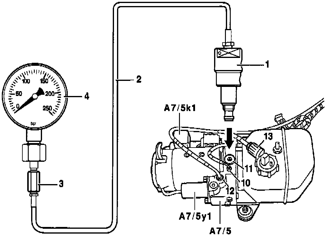 A. Connection of test equipment to hydraulic unit (Figue 1, below).