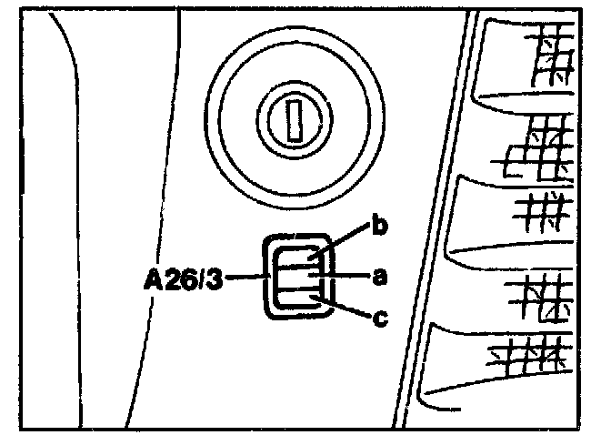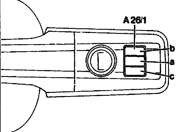 The red (b) and green (c) signal lamps are located on the receiver unit (A26/7) in the interior rearview mirror.
