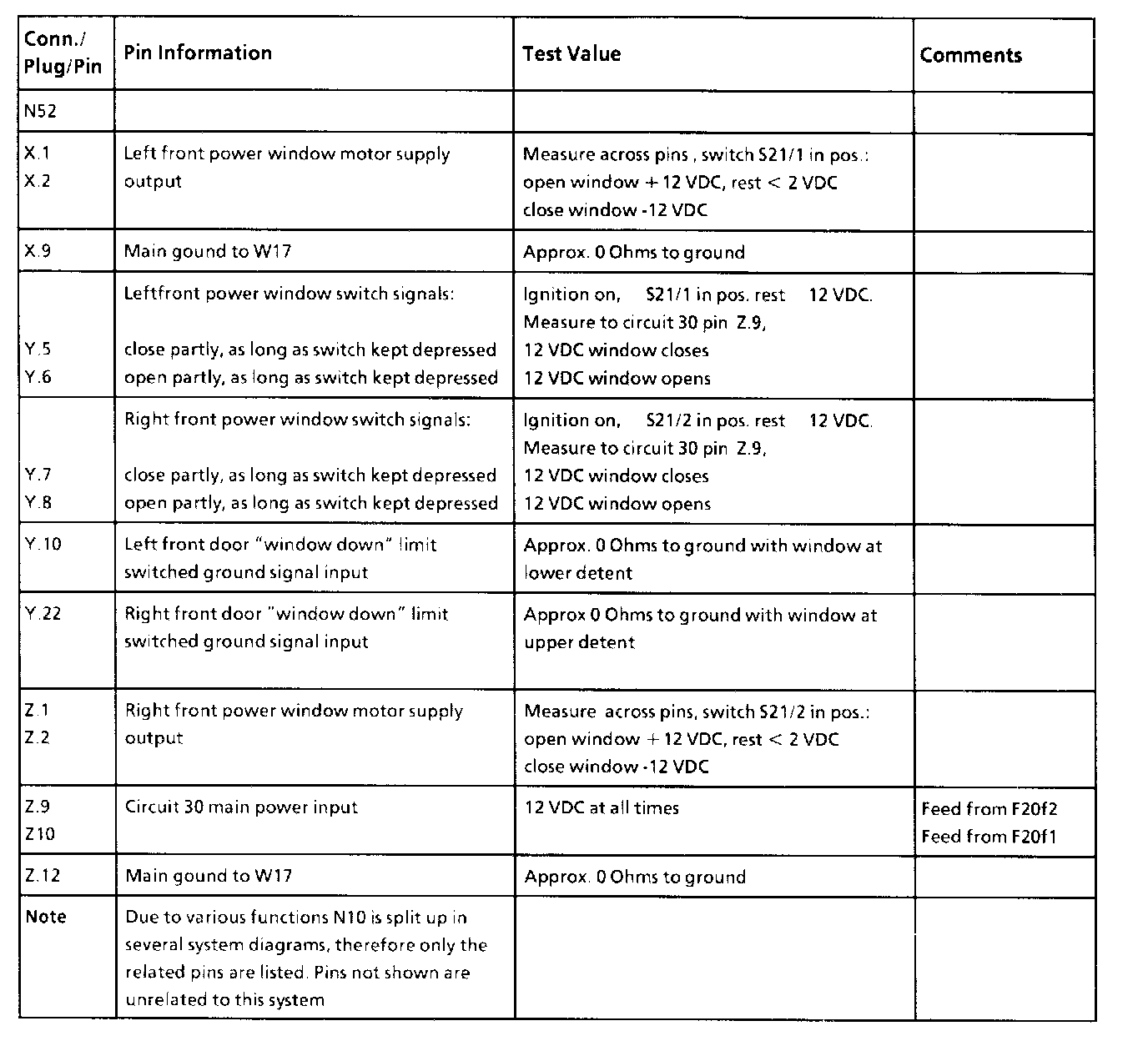 All values measure to ground unless otherwise noted.