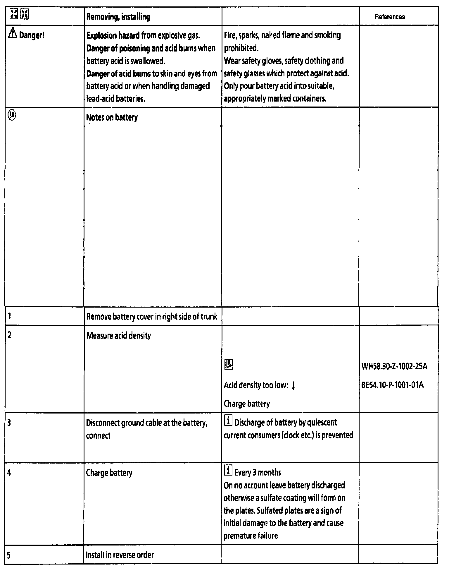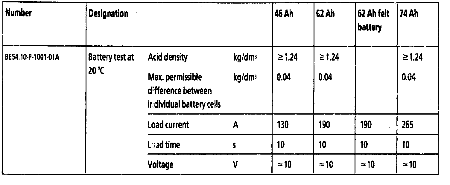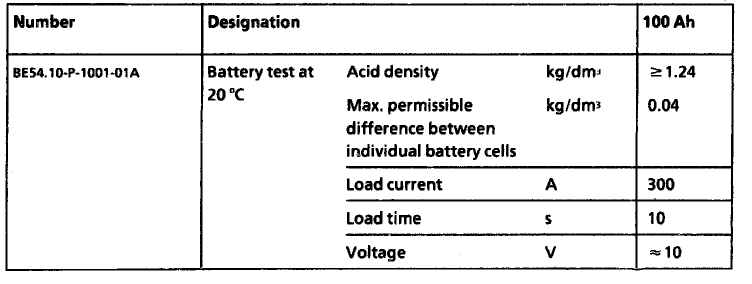 References (BE), Test and adjustment values for battery, power supply, Part 1 of 2
