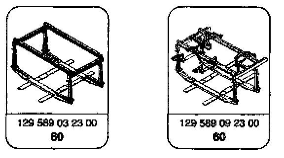 The alignment angle set (129 589 09 23 00) consists of 12 model-specific locating members which can be fastened to the support frame. With these locating members all locating points important for the operation of the soft top can be checked or properly aligned during accident repairs.