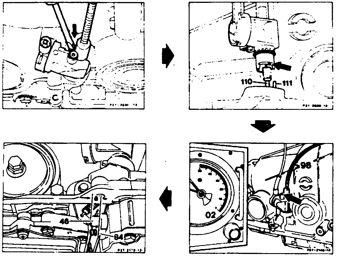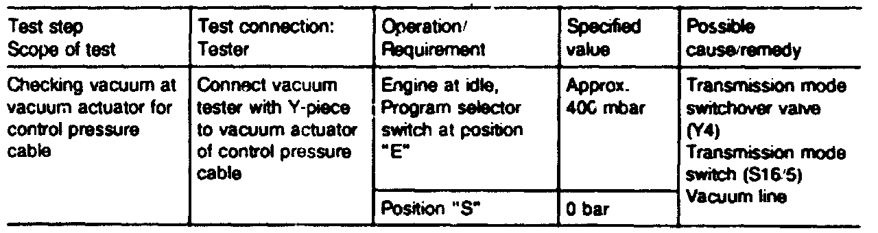 NOTE: Phased in as of 07/93. a standardized control pressure cable has been fitted in the body. The control pressure cable with 2 vacuum actuators in the plastic housing is also used for the transmission which does not need the two vacuum actuators.
