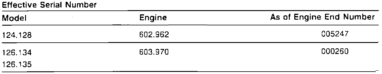 When performing a R&R of the cylinder head on any 602.96, 603.96, 603.97 turbodiesel engine, the previous version cylinder head bolts must be replaced with the modified version.
