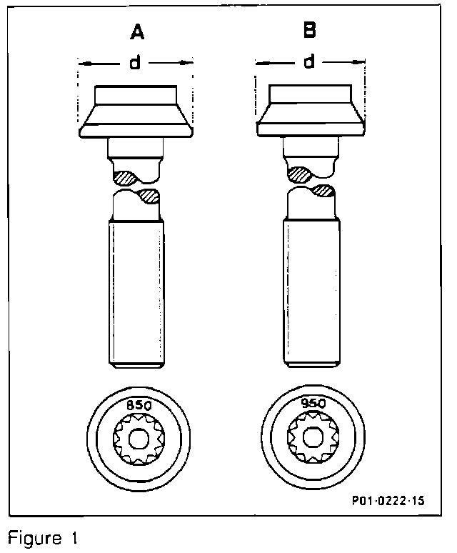 The new head bolts can also be installed on engines which have already been in operation. If one cylinder head bolt needs to be replaced on an engine with the old style head bolts. always replace all the head bolts. Remaining supplies of the old style head bolts can be used up on engines built prior to the phase-in of the revised head bolt. Only the new head bolt will be available as a spare part.
