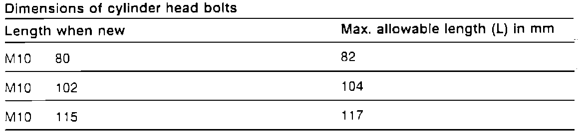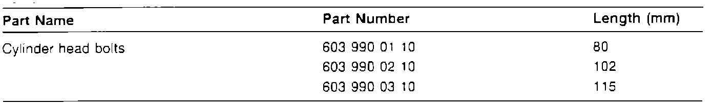 To allow an increased torque preload on the cylinder head bolts, modified cylinder head bolts with increased tensile strength entered production as of the engine end numbers listed in the table.