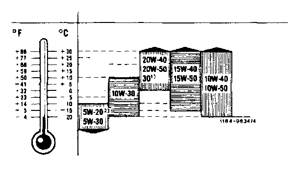 1) At constant ambient temperature above +30°C (86°F), SAE 40 oil can be used.