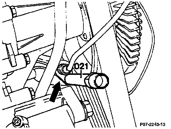 - Install TDC-impulse transmitter (021) on holder (arrow).