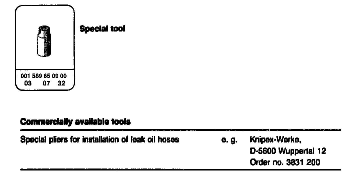 - Use special pliers to pull off leak oil hose (50).