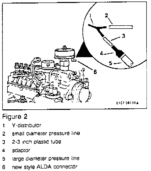 On 1985 and later models with push.on ALDA connectors, injection pumps with the new version ALDA can easily be connected by pushing the connecting piece of the pressure line onto the new style ALDA connector. The diameters of the old and new style connectors are the same (Version 1 [Figure 1]).