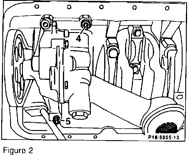 Therefore, the internal hex. socket oil pump mounting bolts (4 and 5, Figure 2) and the bolt (3, Figure 1) attaching the support bracket to the oil pump pickup do not need to be removed.