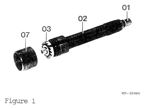 5. Using a depth gauge, measure and record dimension "X" between upper edge of end mill shaft (01) and sleeve (02, Figure 4).