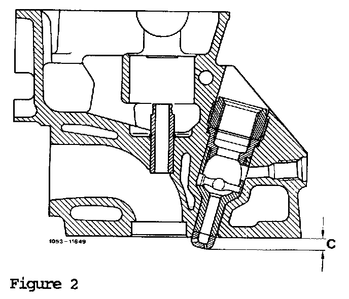 If the Cylinder head remains installed, then the pre-chamber seating surface may be reworked only once. It is absolutely essential to observe the specified pre-chamber projection of 7.6-8.1 mm (Dension C, Figure 2) as it provides the required Clearance between the pre-chamber and the piston Crown with