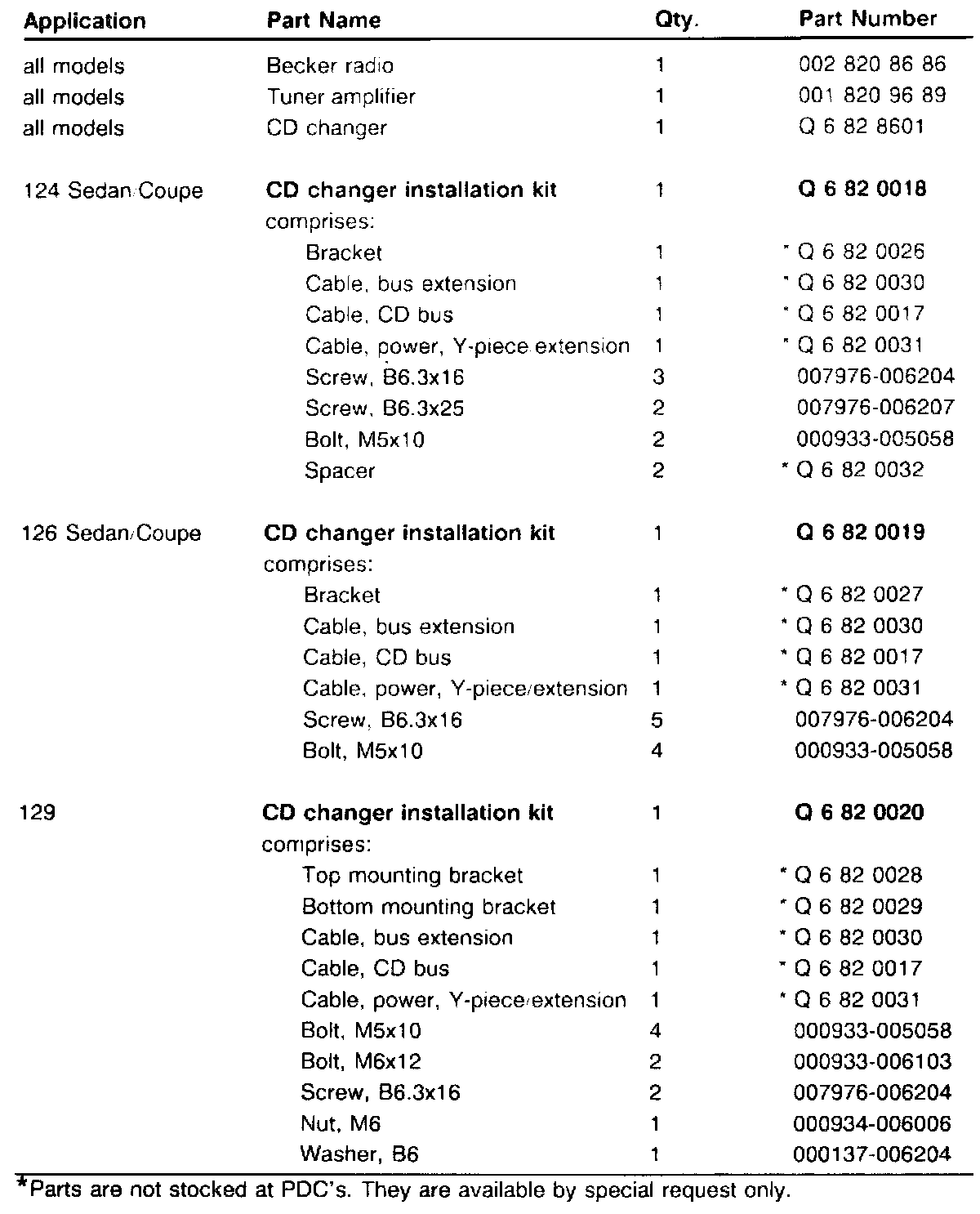 M.Y. 1991 MODELS 124 (EXCEPT 124.090/290), 126 AND 129 REPLACEMENT OF SINGLE UNIT RADIO WITH TWO-PIECE CD-CAPABLE RADIO