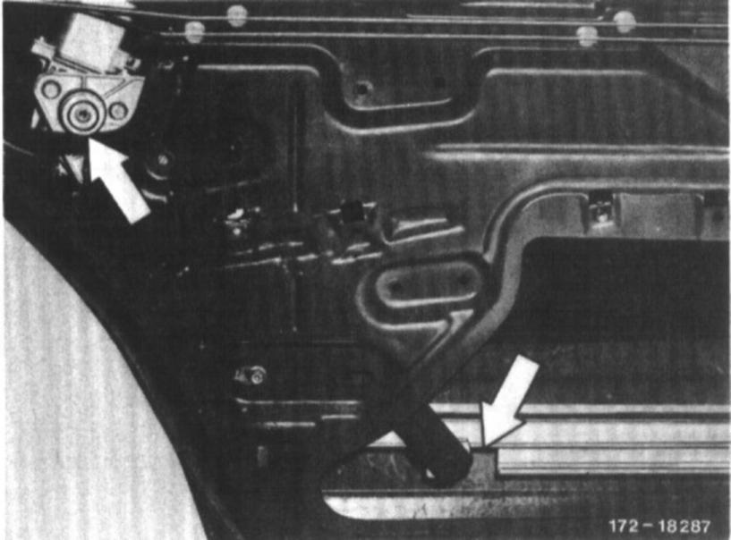 6. Remove screw bolts on window opener motor through inner door panel in inward direction.