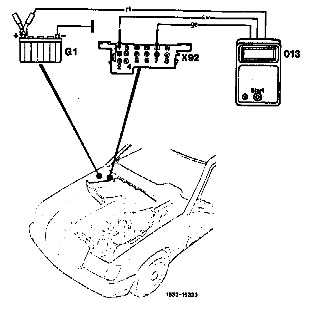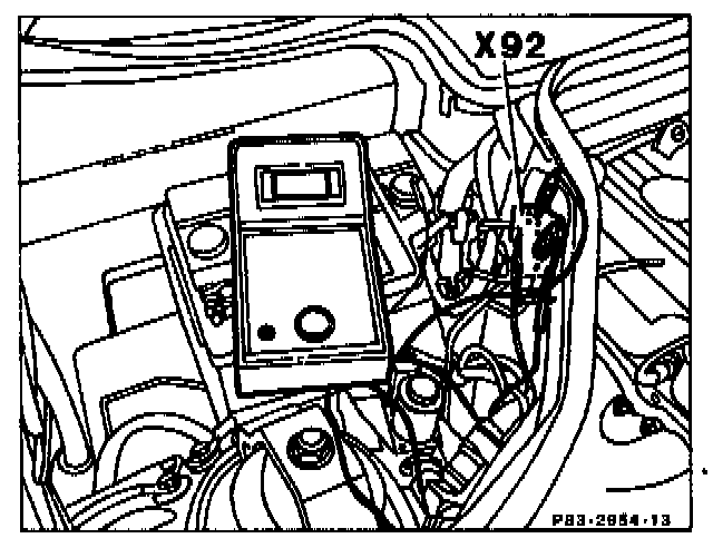 b) Test socket 1 on test coupling X92 against battery positive (11-14 V).