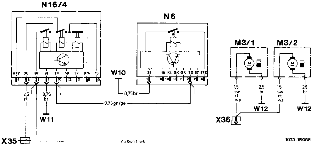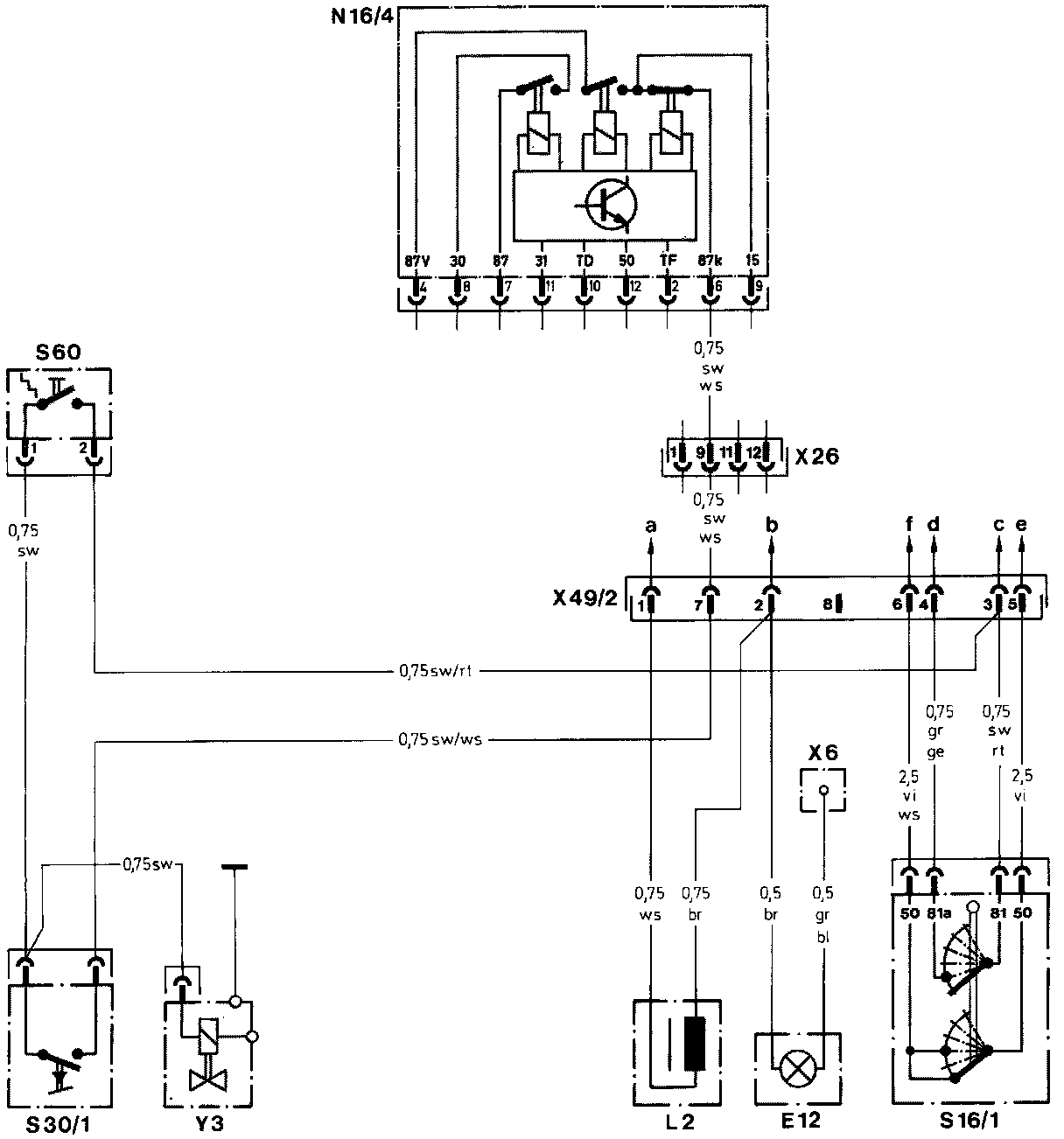 X26 Connection engine wiring harness (The black/white wire from connector X49/2 is connected to terminal 7)