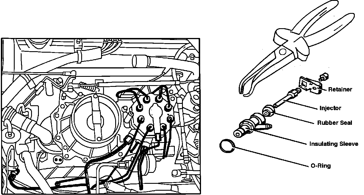2. Remove the injection lines from the fuel distributor and the injectors.