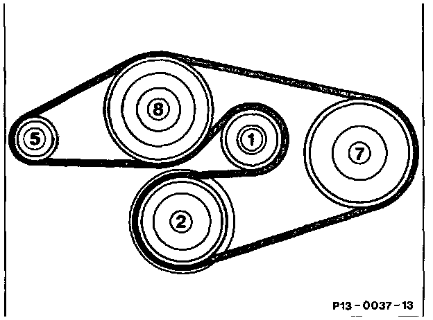 - Begin at the idler pulley (1) and procede in the numerical sequence of the belt routing diagram.