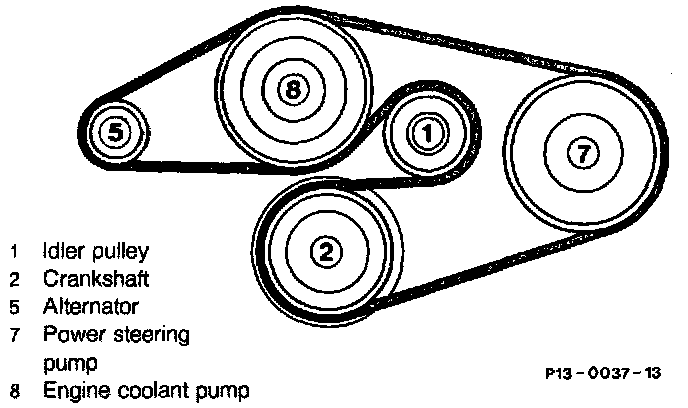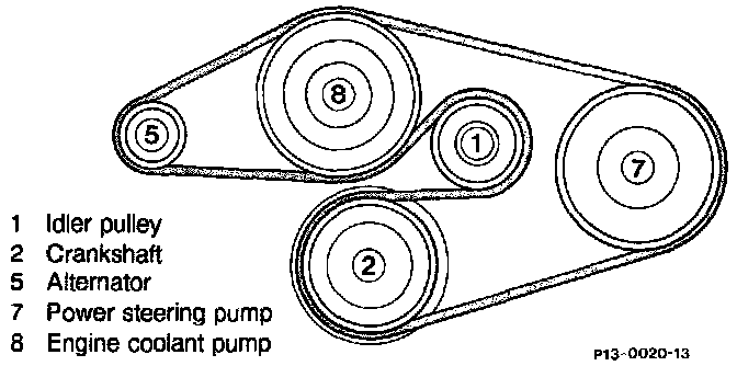 Belt routing on vehicles WITHOUT power steering and air conditioning.
