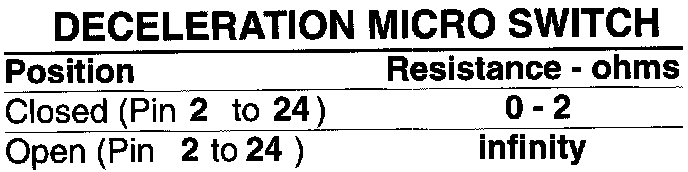 1. Deceleration micro switch is not applicable prior to MY 1987 190E 2.3. Instead the signal on this terminal is a start signal and is tested in the volts section.