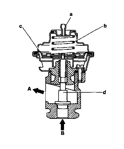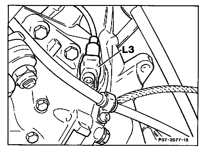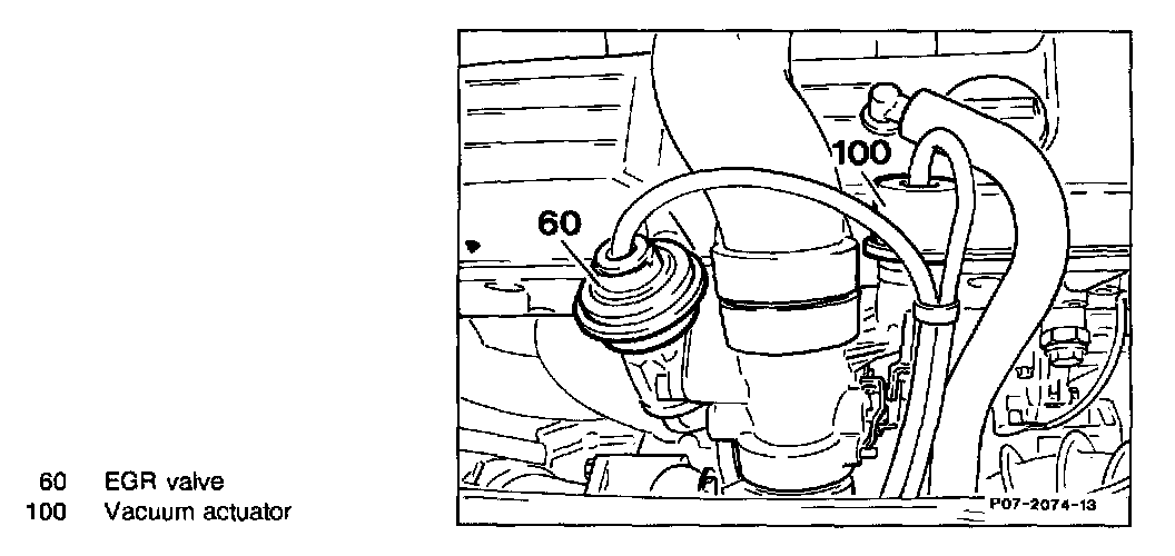 The EGR valve, together with the mixture tube, is bolted laterally to the cylinder head. It is connected to the exhaust manifold, the intake manifold crossover pipe and to a corrugated tube. Controlled vacuum from the switchover valve (Y27) and vacuum transducer (Y31/1) is applied to the EGR valve to open the valve.