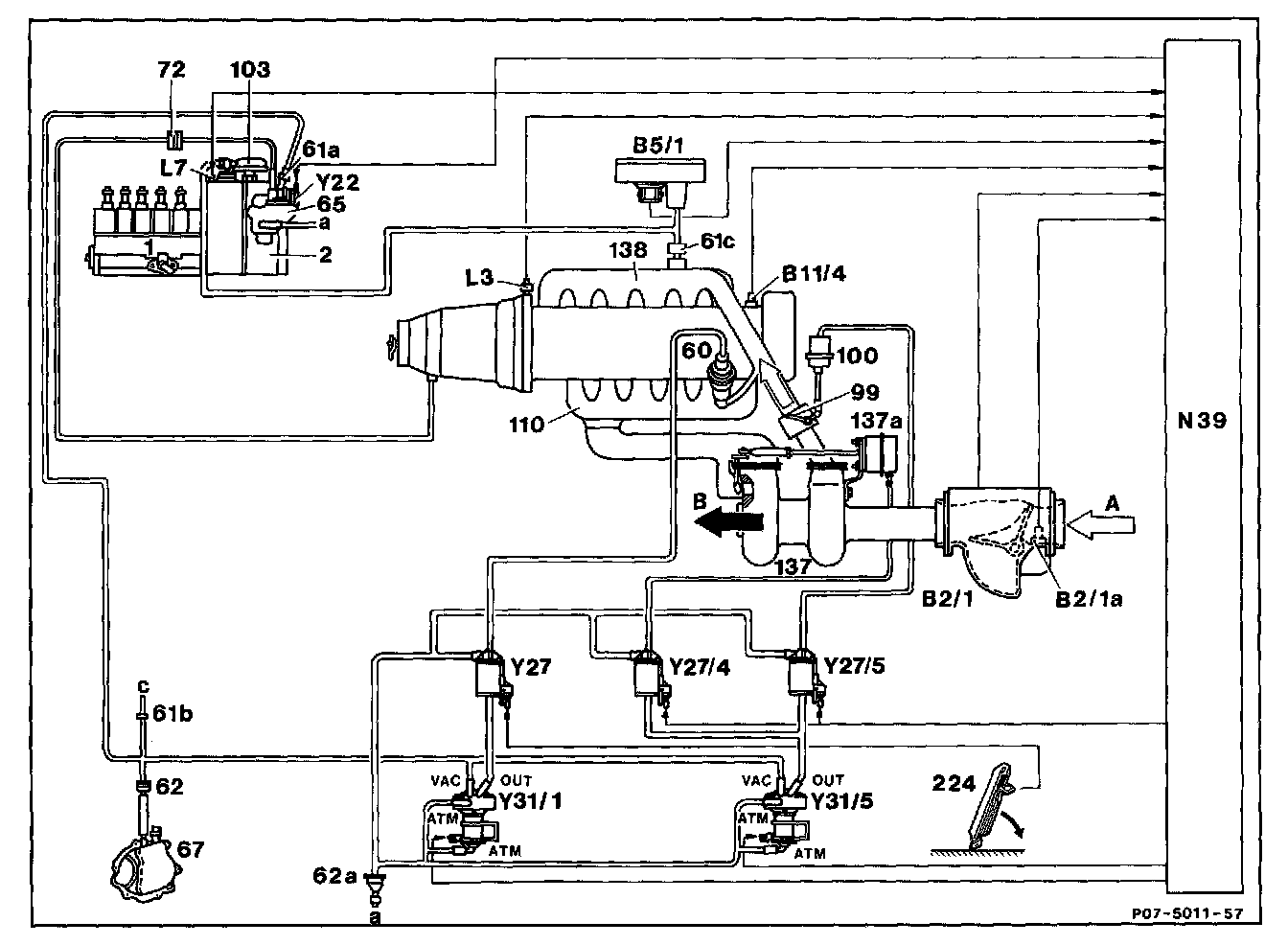 OUT From vacuum transducer (Y31/1) to EGR switchover valve (Y27)
