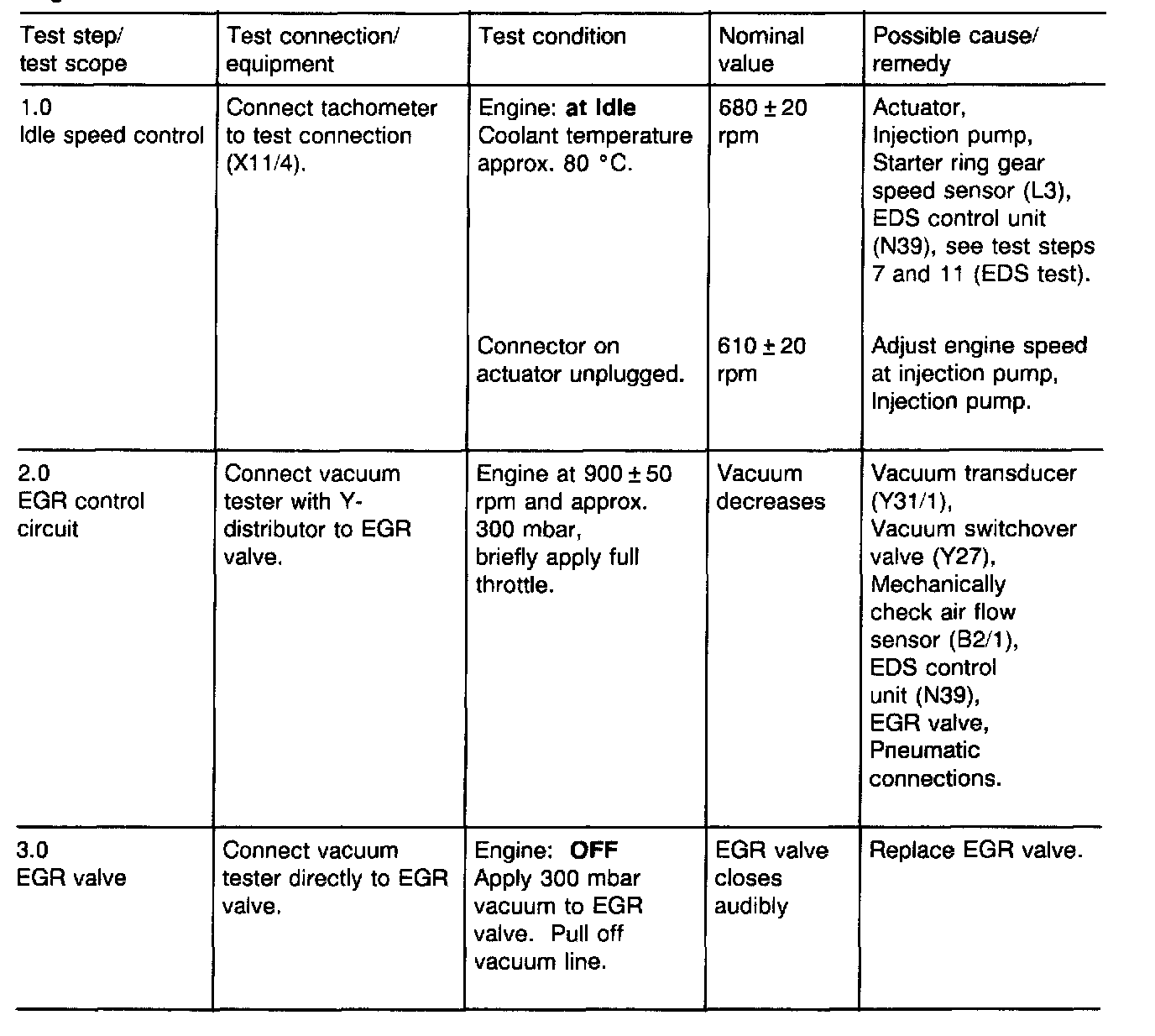 Function tests, electronic idle speed control (ELR), EGR, P2-controlNote: This test is to be performed if there is a driveability complaint, but no malfunctions are displayed by the impulse readout.