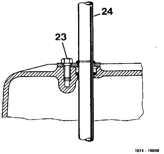 6 Unscrew bolt (23) and withdraw dipstick guide tube (24) from front axle housing.