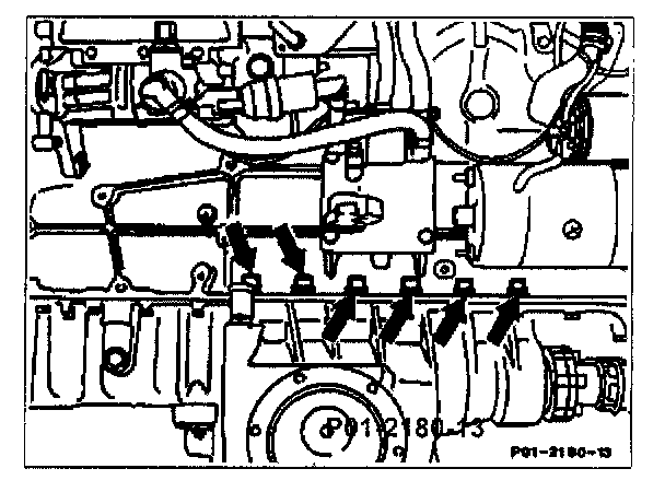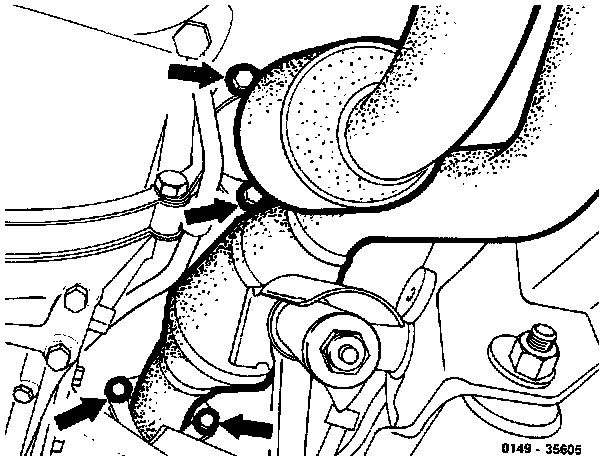 8. Unscrew bolts (arrows) for exhaust system on the flange of the exhaust manifold.