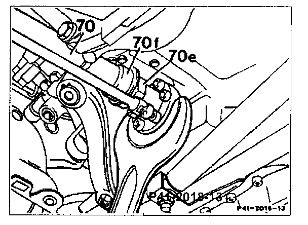 9. Unscrew propeller shaft (70) to front axle at front axle housing. To do this, counter-hold the connecting flange with 65 mm open-end wrench and unscrew six bolts.