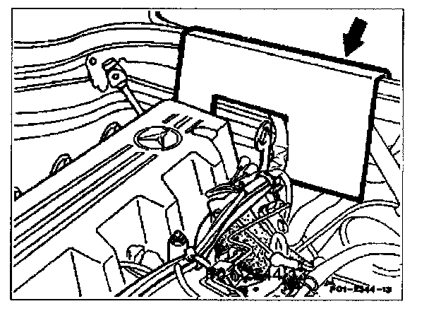 15 Insert guard plate (arrow) between component compartment wall and engine.