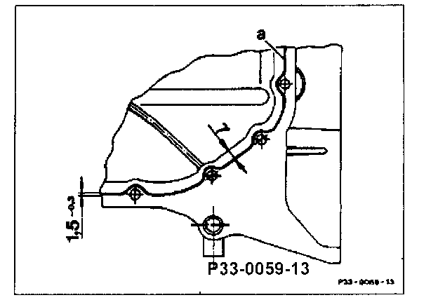 22 Clean contact surfaces on front axle housing. Apply sealant 001 989 45 20 10 to the contact surface on front axle housing (a = silicon bead ~ 1.5 mm). First mate front axle housing to the transmission, then bolt to crankcase.