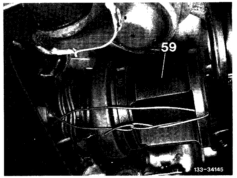 40. Remove front axle shafts (59). Operate foot brake to slacken the six bolts (microencapsulated). Compress front axle shafts as much as possible and hold in this position with wire. Lay front axle shaft on crossmember, tightening torque 70 Nm (52 ft lbs).