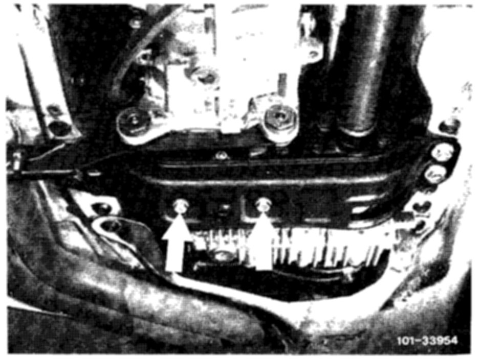 46. Unscrew 2 engine mount bolts from below, tightening torque 20 Nm (15 ft lbs).