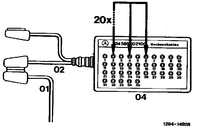 - Bleed hydraulic system. Connect socket box. Disconnect 4MATlC control unit and connect 25-pin connector to the socket box (04) with the Y cable (02). The control unit remains disconnected.