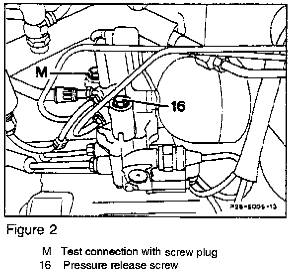 Before performing any diagnosis or repair of the hydraulic system, release system (accumulator) pressure at the pressure release screw (15, Figure 2).