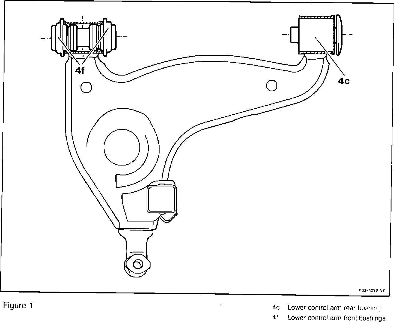 This Work Instruction describes replacement of rear control arm rubber bushings with hydraulic bushings (4c, Figure 1). Until Group 33 Service Microfiche is available for Model 140, refer to: Service Microfiche, Front Axle, Model 129, Group 33.
