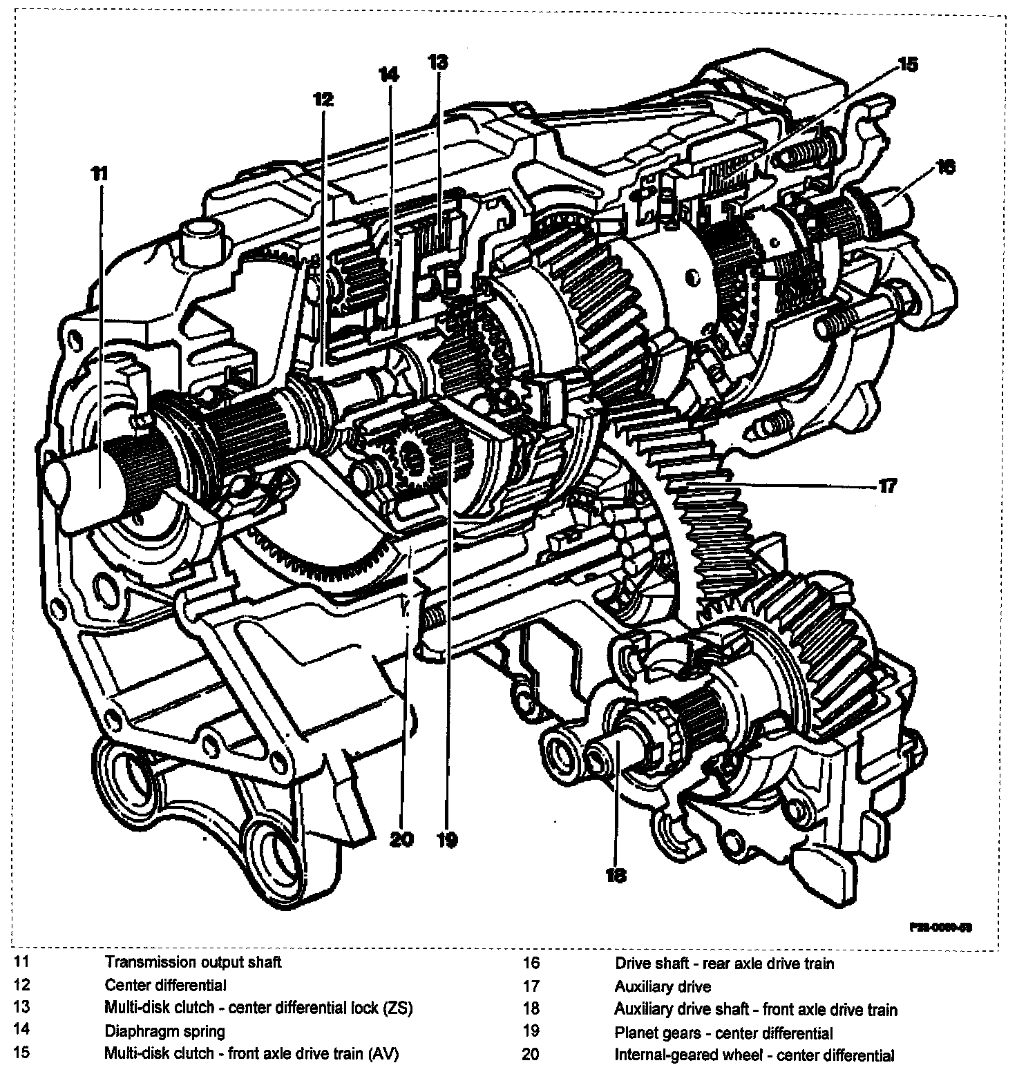 As of transfer case no.18 640, an helically geared planetary gear train (center differential and internally-geared wheel) has been installed on vehicles with automatic transmission.