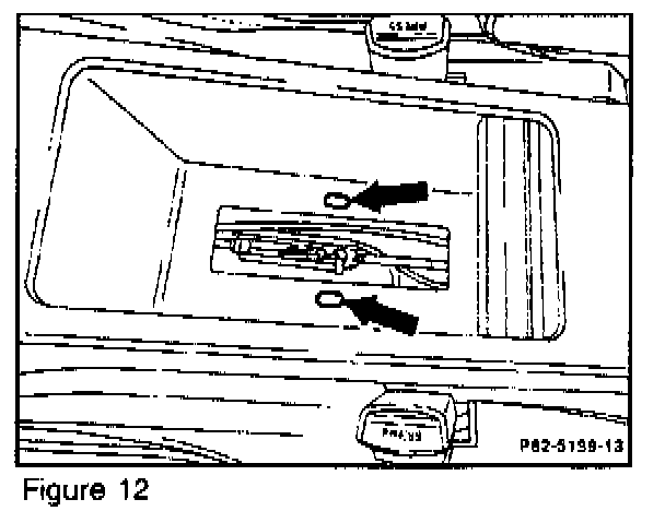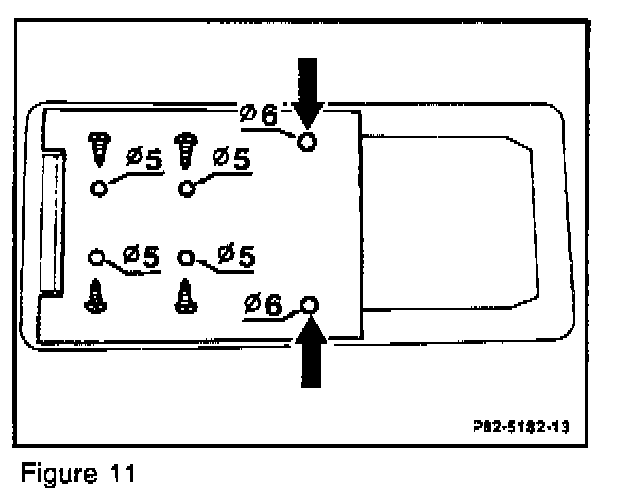 2. Place reinforcing plate on back of carpeting so that the two outer alignment tabs (arrows, Fig. 11) fit over the plastic tabs.