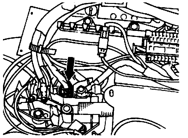 1 Pull off rubber grommet (arrow) below the vehicle on the right of the firewall.