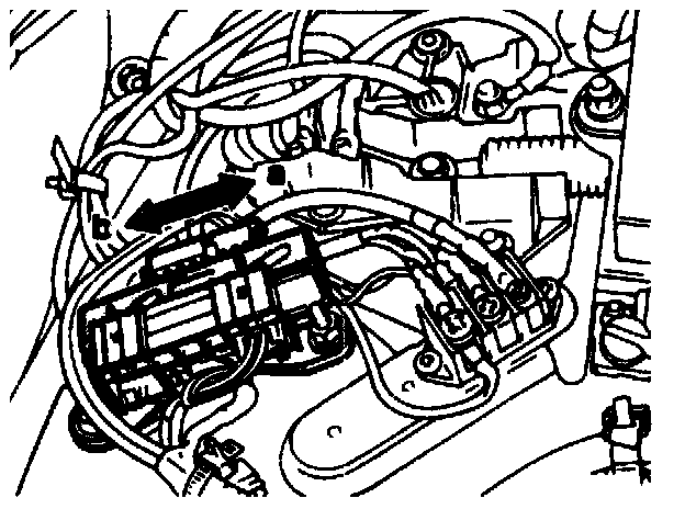 3 Fit on rubber grommet (arrow) below the vehicle on the right of the firewall.