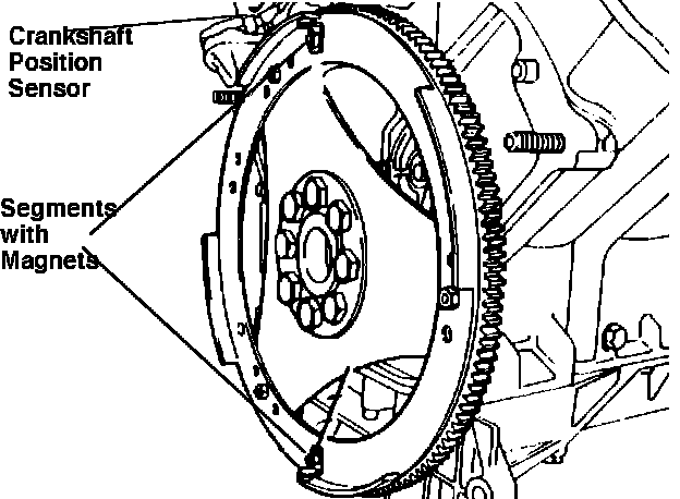 The crankshaft position is recognized from the voltage signals which are produced. The segment front edge generates a negative voltage signal. The segment rear edge generates a positive voltage signal. Engine speed is determined by measuring the period (d) which is equal to one crankshaft revolution.