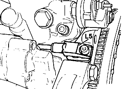 The crankshaft position sensor (L5) registers the crankshaft position and engine speed. The position sensor is mounted to the crankcase near the starter flange. The sensor body projects through the crankcase very near to the segments on the flywheel/drive plate. There is no contact between the segments or the position sensor.