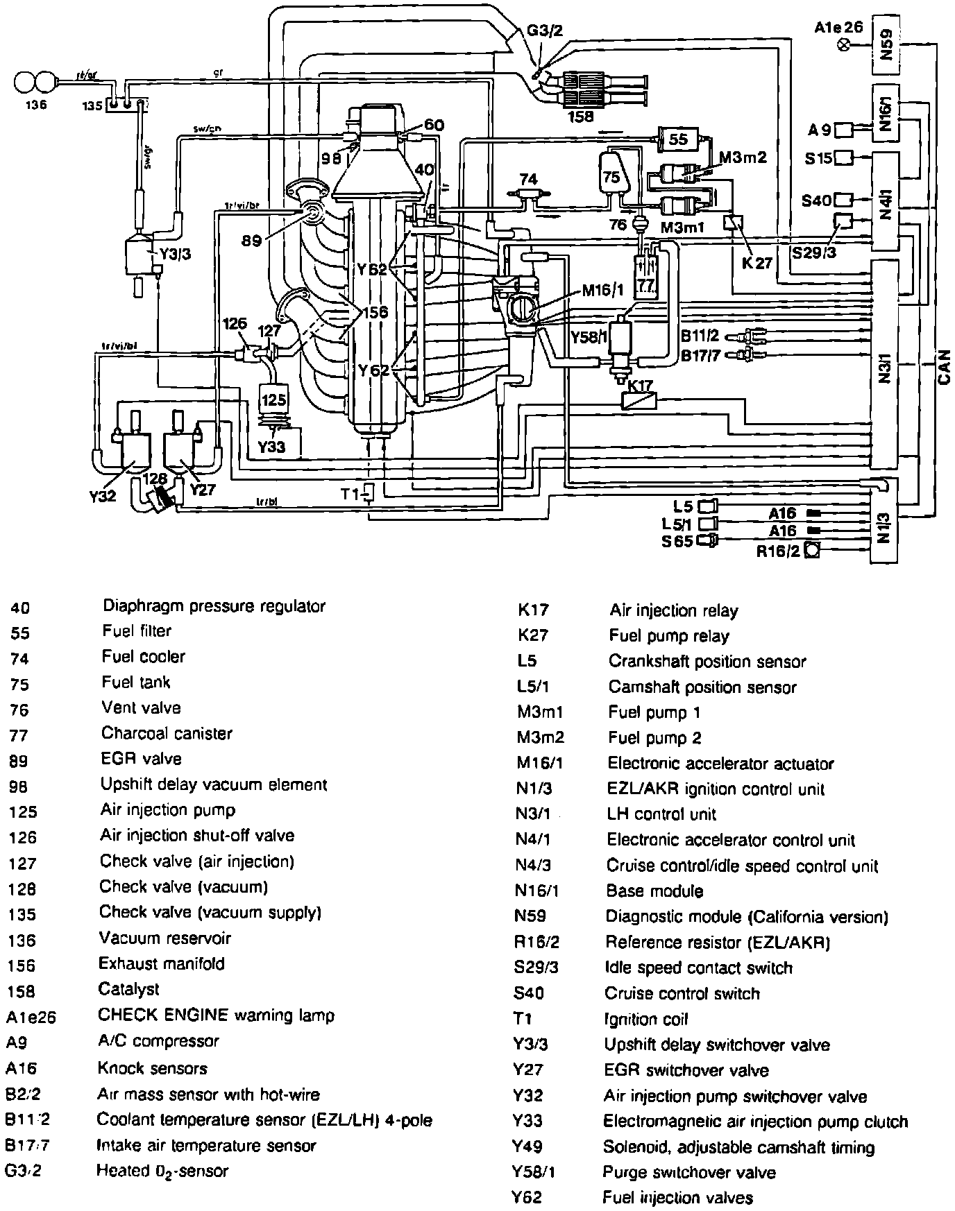 The Bosch LH/EZL Computerized Engine Control system electronically regulates the air/fuel mixture, idle speed, and ignition timing to achieve optimum engine performance. Optimum performance means the best possible compromise between the demands of high power, low fuel consumption, and the cleanest possible exhaust emissions.