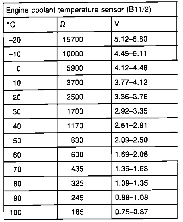 Coolant Temperature Sensor Specifications:
