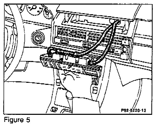 13. Attach two self-adhesive retainer clips to rear of in-dash controller with the open end facing up (Fig. 5).